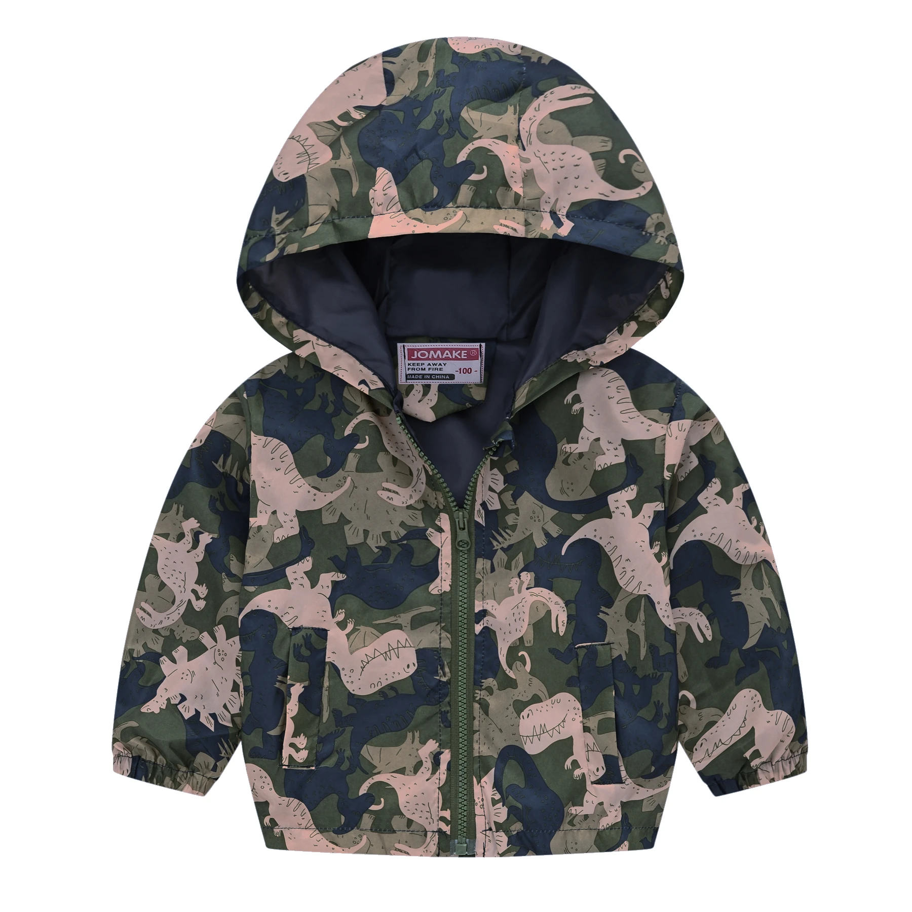 Cartoon Dinosaur Print Windbreaker Jacket for Kids Boys