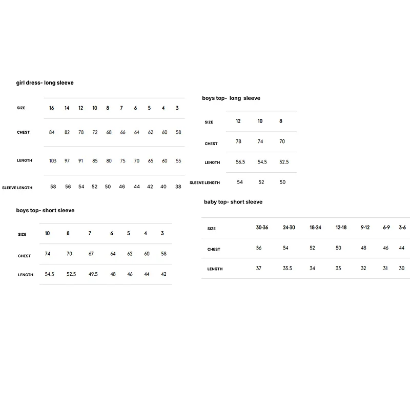 DRESSES SIZE IN CM |