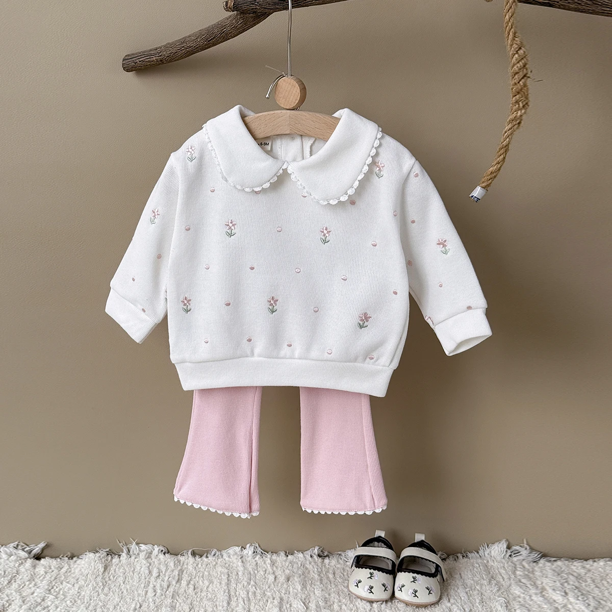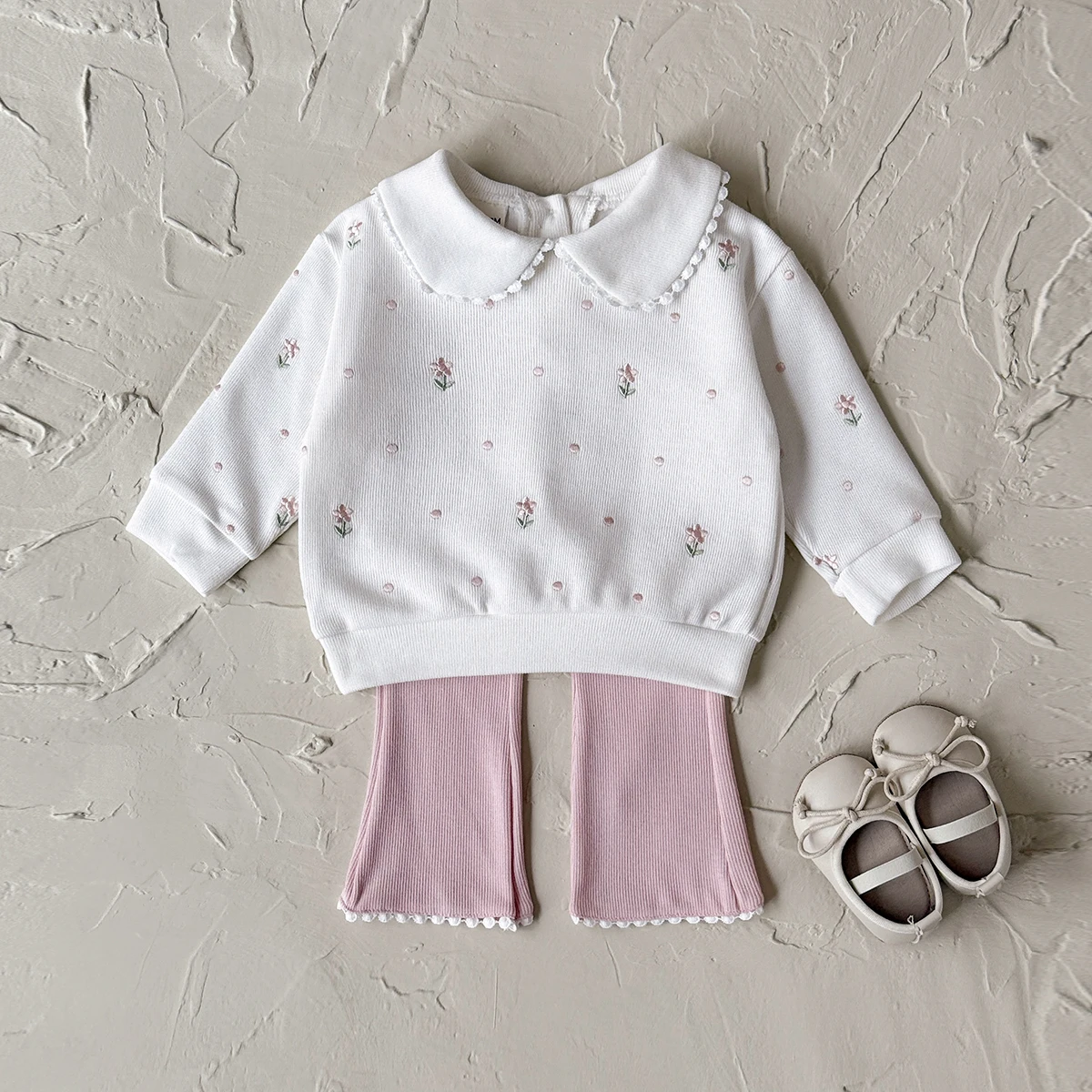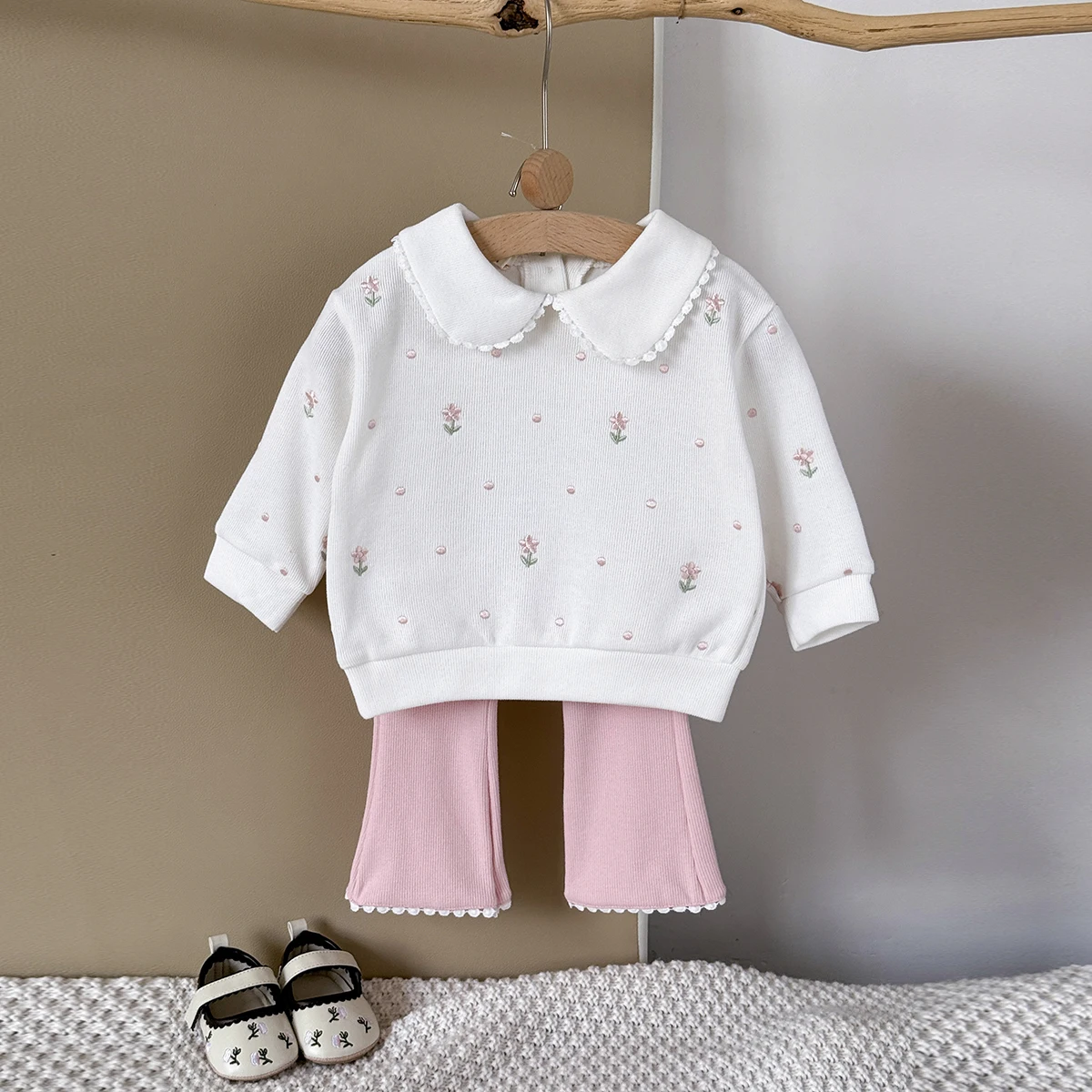 Flower Embroidered Baby Girls 2pcs Spring/Autumn Clothing Set