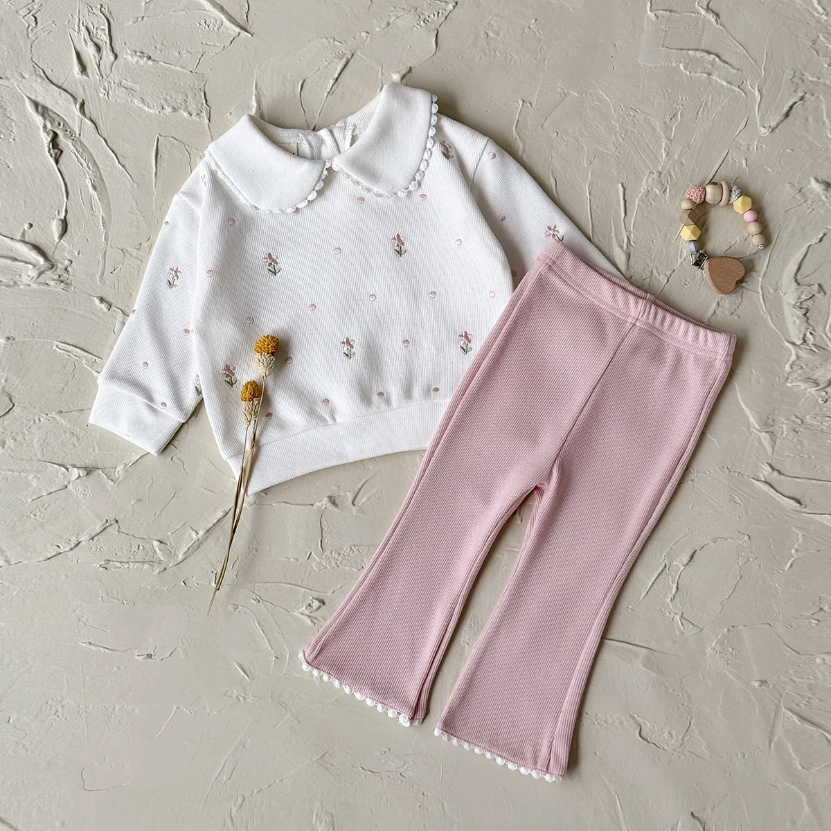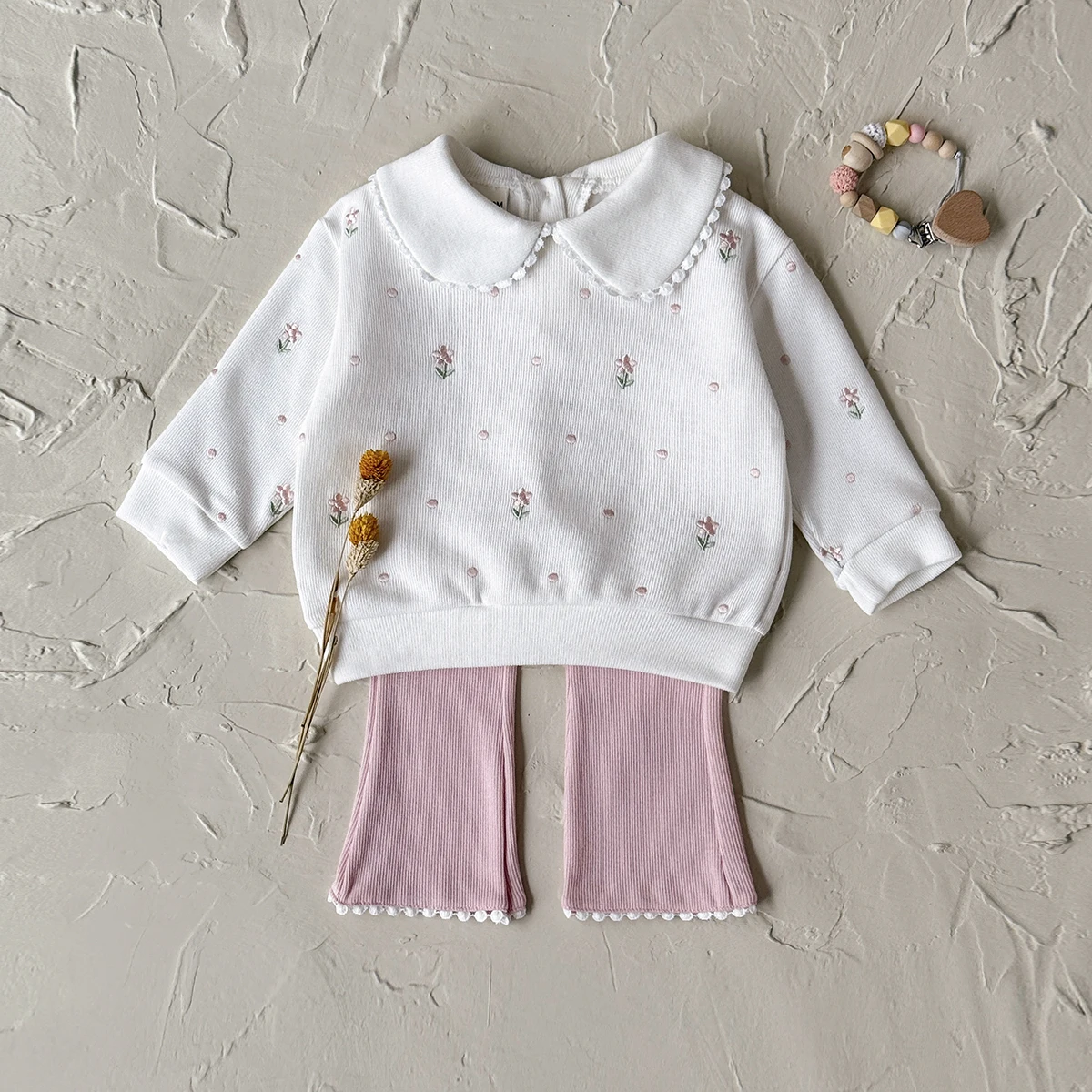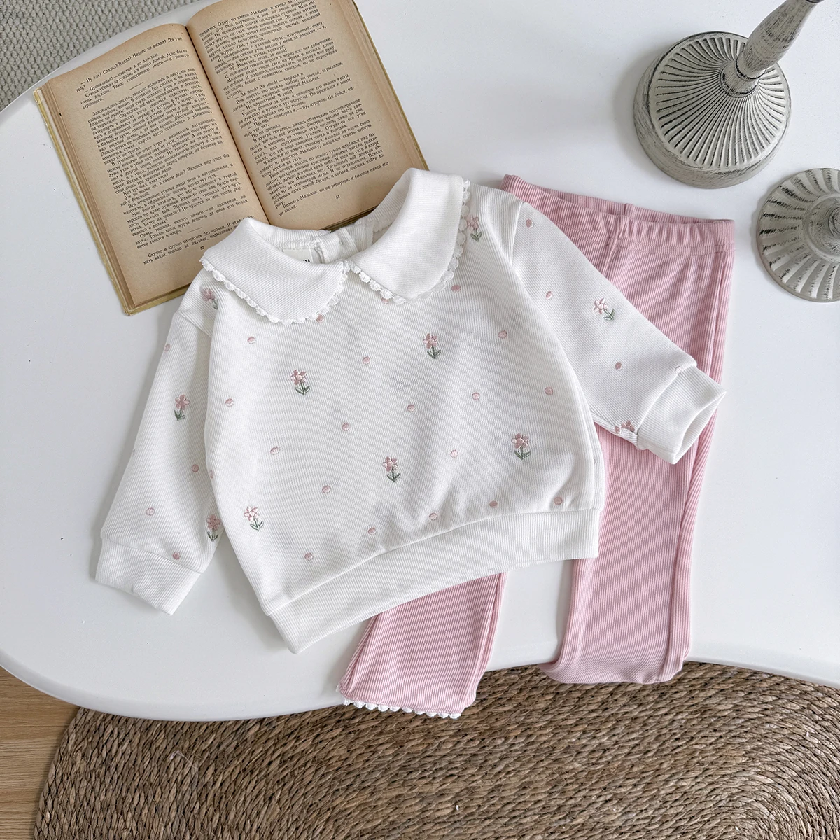 Flower Embroidered Baby Girls 2pcs Spring/Autumn Clothing Set