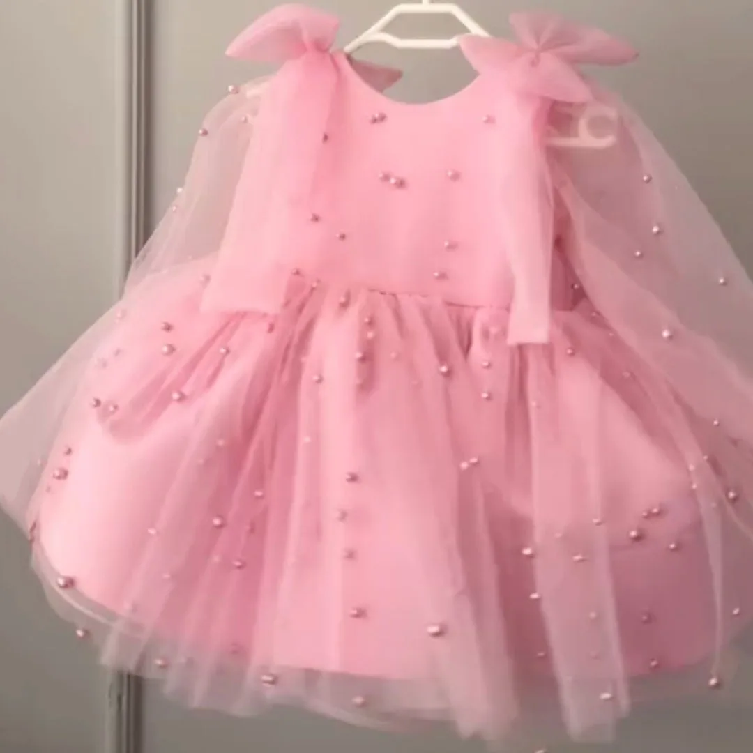 Girls Bow Design Long Sleeve Tulle Gown for Party/Wedding