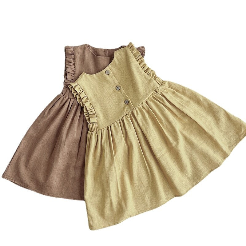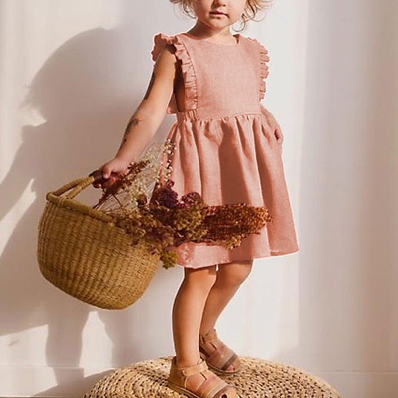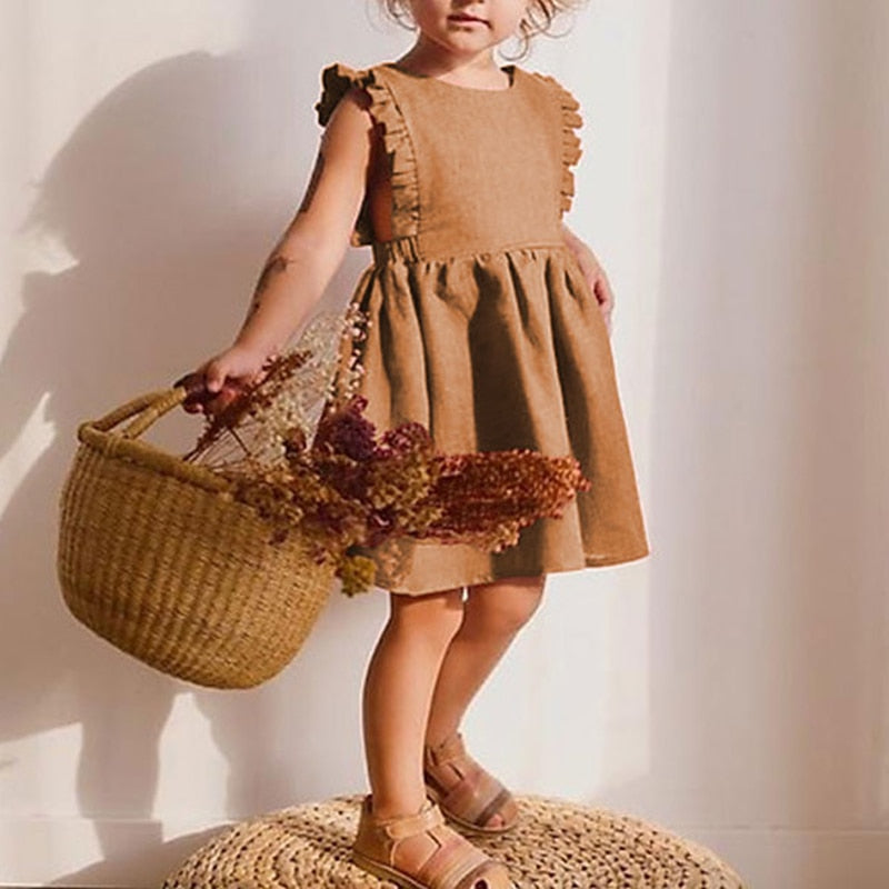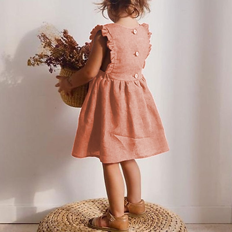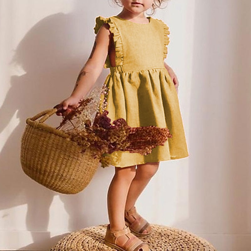 Kid Girl Solid Ruffles Sleeveless Sundress | Cotton Dress