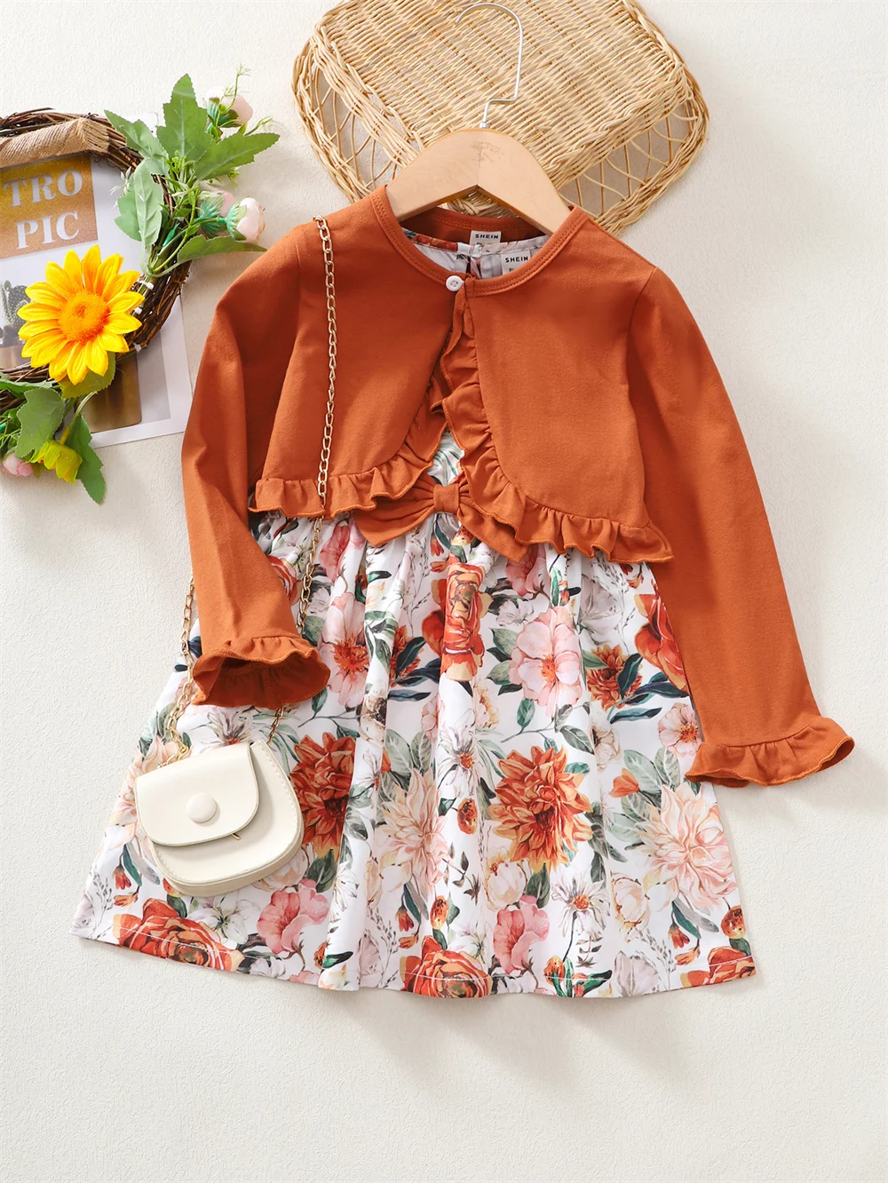 Kids Girls 2pcs Floral Princess Dress + Solid Color Jacket Set