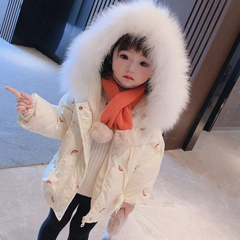 Kids Girls Big Fur Warm Cotton Padded Coat/Jacket