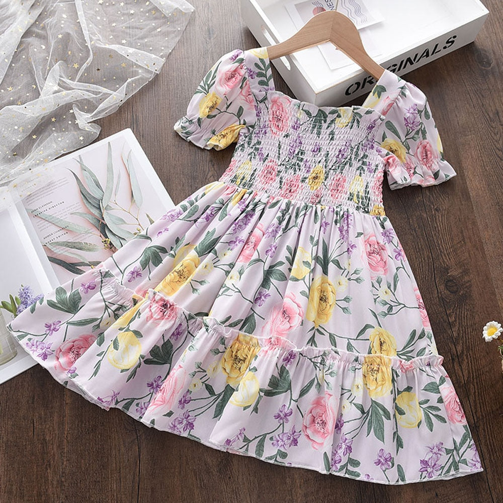 Kids Girls Flower Embroidery Casual Cotton Dresses