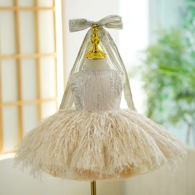 Kids Girls Puffy Feather Design Party Performance Dress