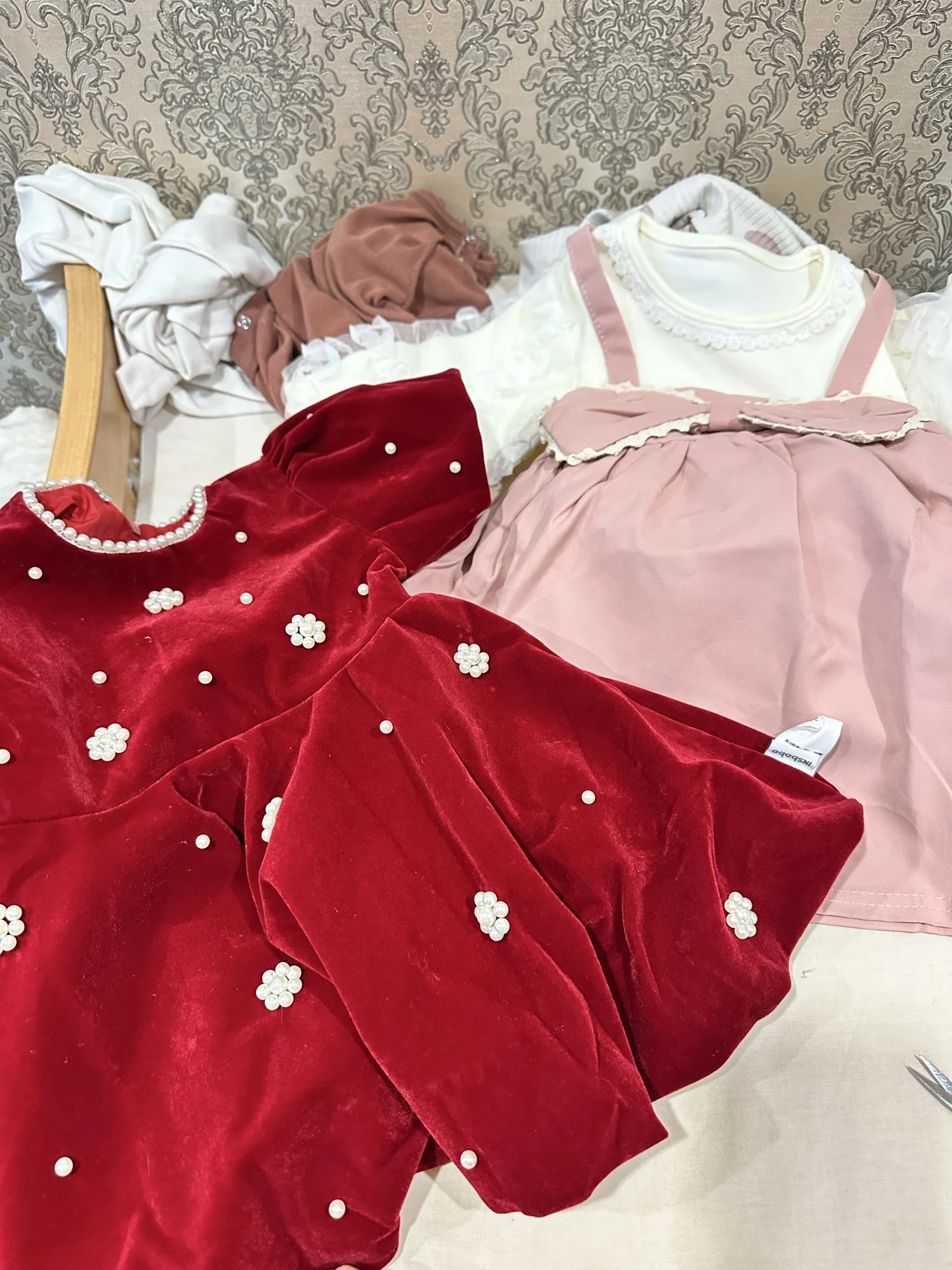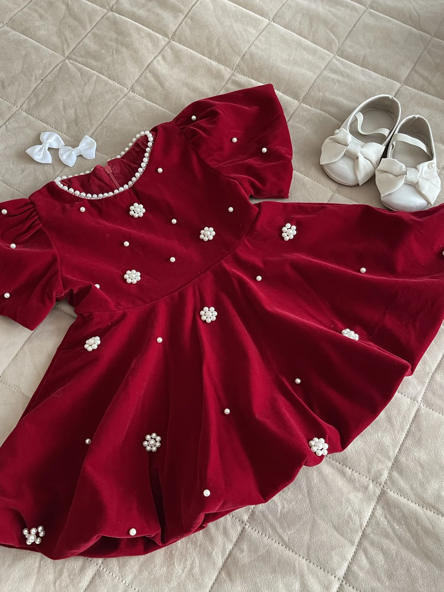 LIttle Girls' Pearl Design Thick Warm Fleece Party Dresses