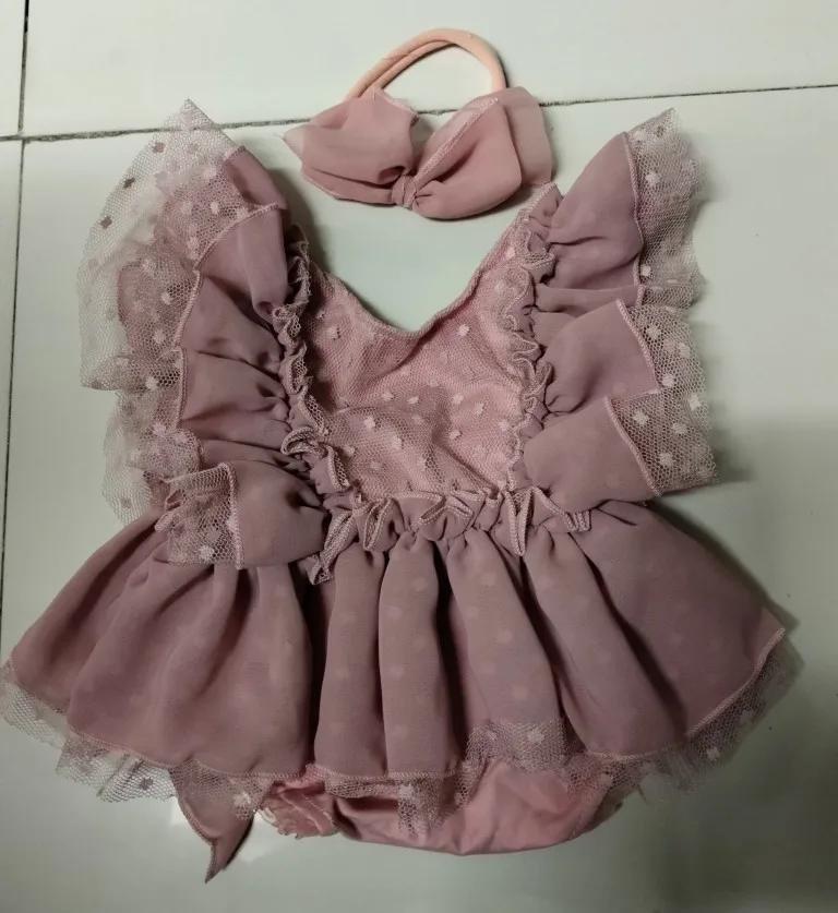 Newborn 2 Pieces Romper and Bow Hairband Photography Outfit