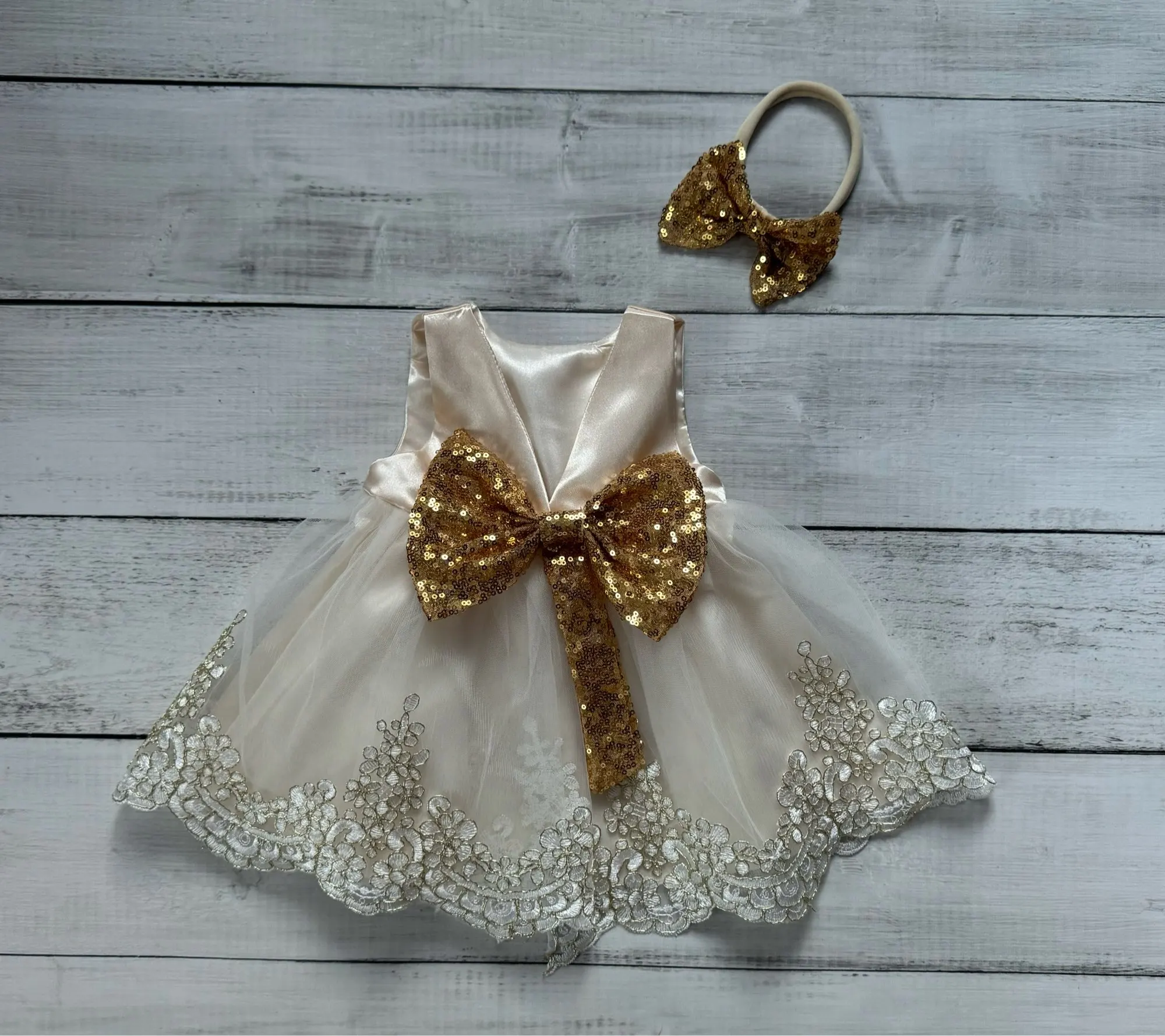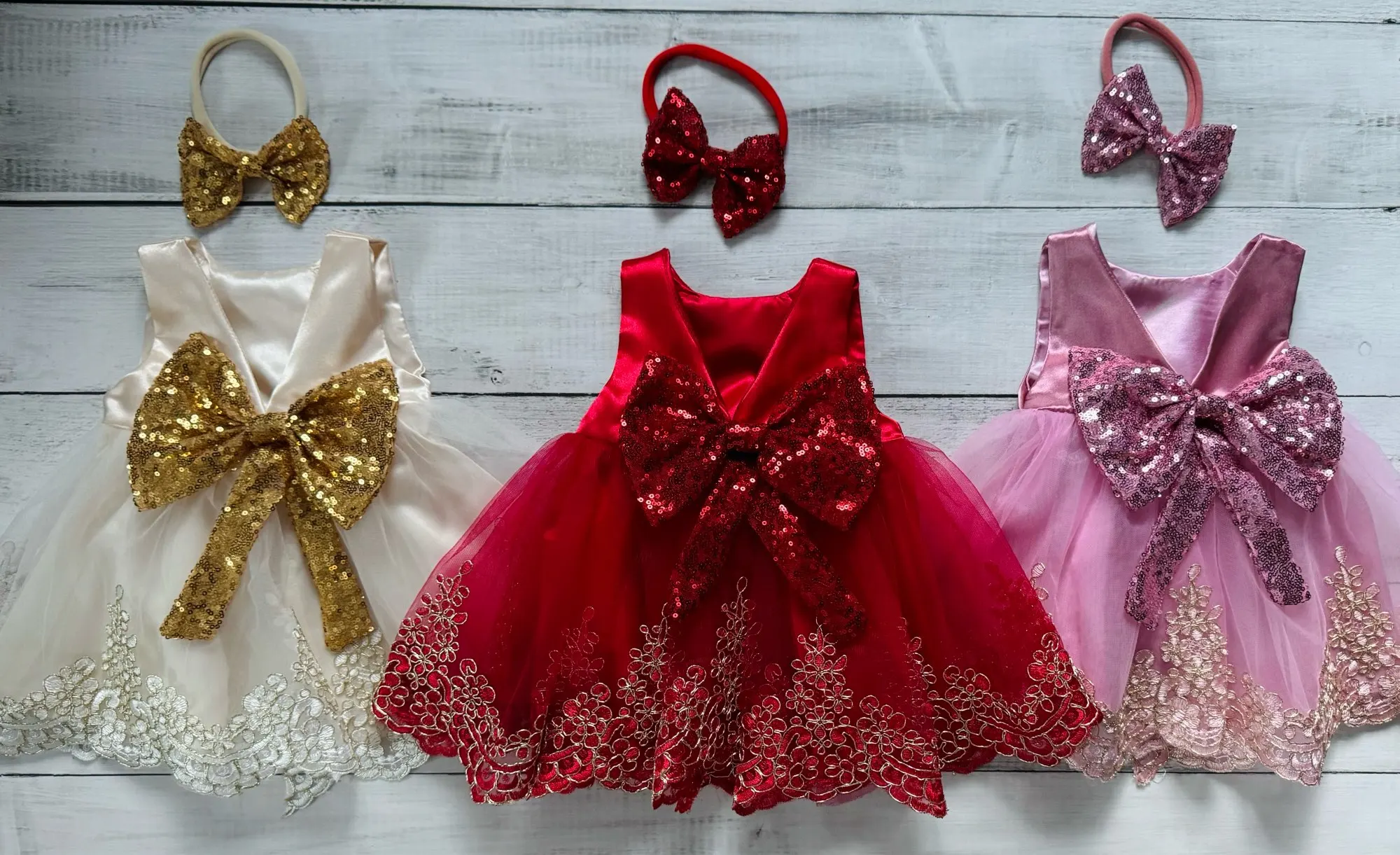 Newborn Girls' Lace and Glitter Bow Design Photography Outfits