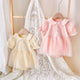 Short Sleeve Floral Lace Baby Girl Cotton Bodysuit with Hat