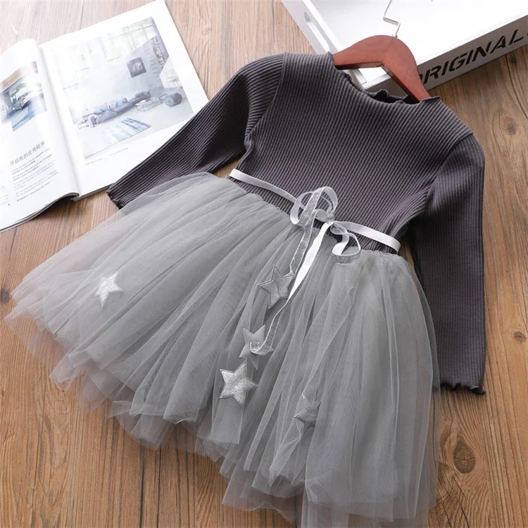 Toddler Girls Fluffy Sweater Dresses With Star Design